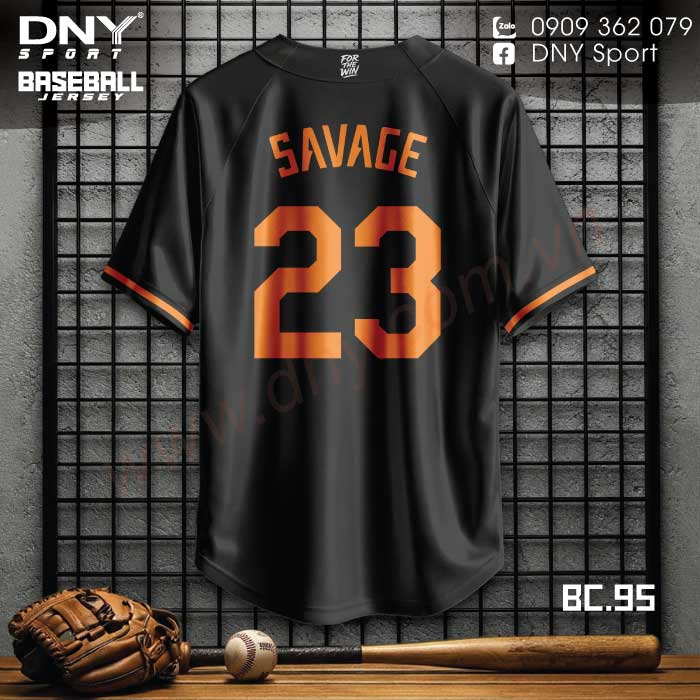 Khi bạn muốn mang theo chiều sâu và sự nổi loạn đầy kiểm soát: Mẫu áo thi đấu bóng chày này là sự kết hợp giữa nền đen huyền bí và chữ cam rực rỡ — như ánh hoàng hôn trên mặt biển. Mặt sau in tên Savage cùng số 23 tạo cảm giác mạnh mẽ, táo bạo và đầy cá tính. Thiết kế phù hợp cho nhóm yêu thích phong cách đường phố, thể thao hoặc biểu diễn nghệ thuật. Đặt may ngay hoặc xem thêm top 10 mẫu áo bóng chày đẹp nhất tại đây.