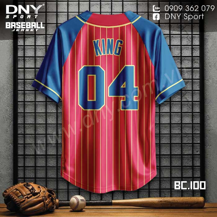 Áo Bóng Chày KING – Đỏ Sọc Vàng Phối Xanh Quyền Lực