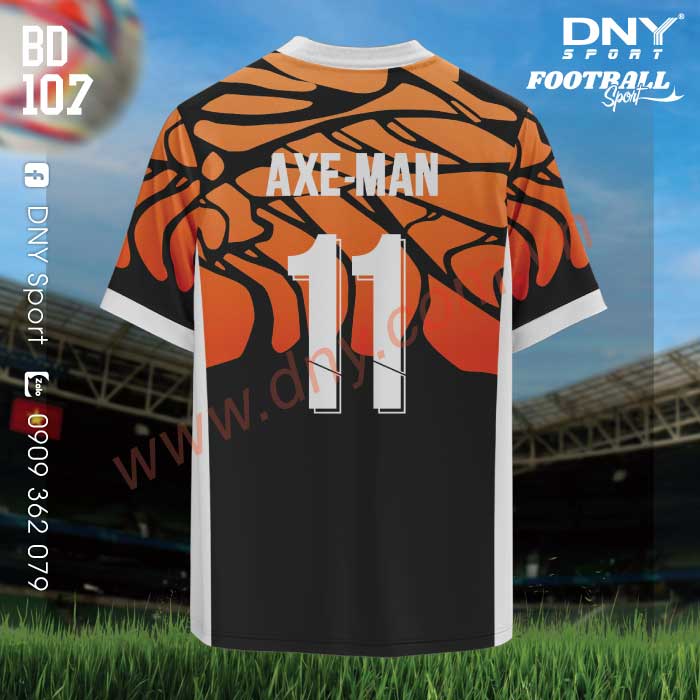 In thân sau : in chuyển nhiệt họa tiết như hình, tên đội và số áo.