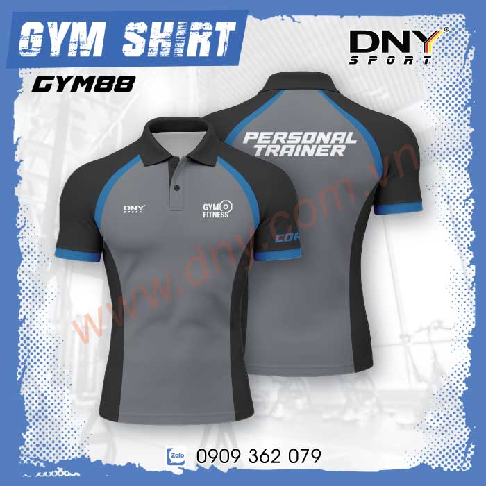 Mẫu Áo Gym Xám - Đen Personal Trainer Polo – Grey & Blue Performance Form