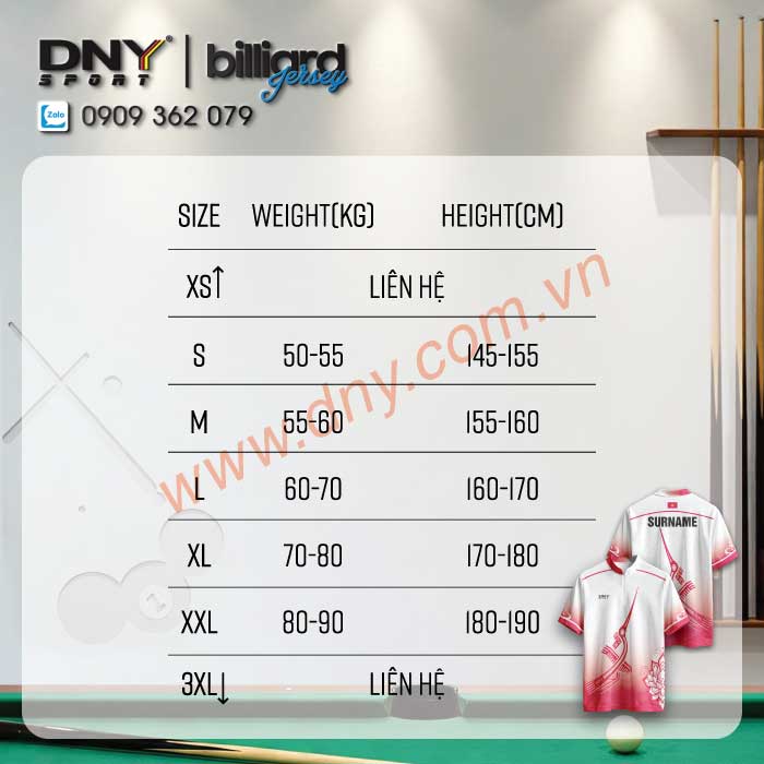 Với hình thức đặt may áo bida theo yêu cầu tại DNY Sport sẽ mang đến cho bạn những thiết kế mới lạ, không đụng hàng.