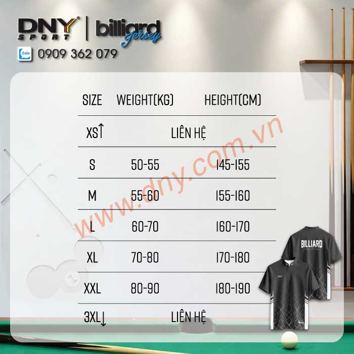 Các thông tin cần thiết khi đặt may áo bida theo yêu cầu - DNY-BIDA2510080030