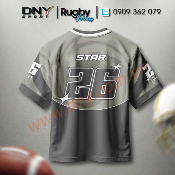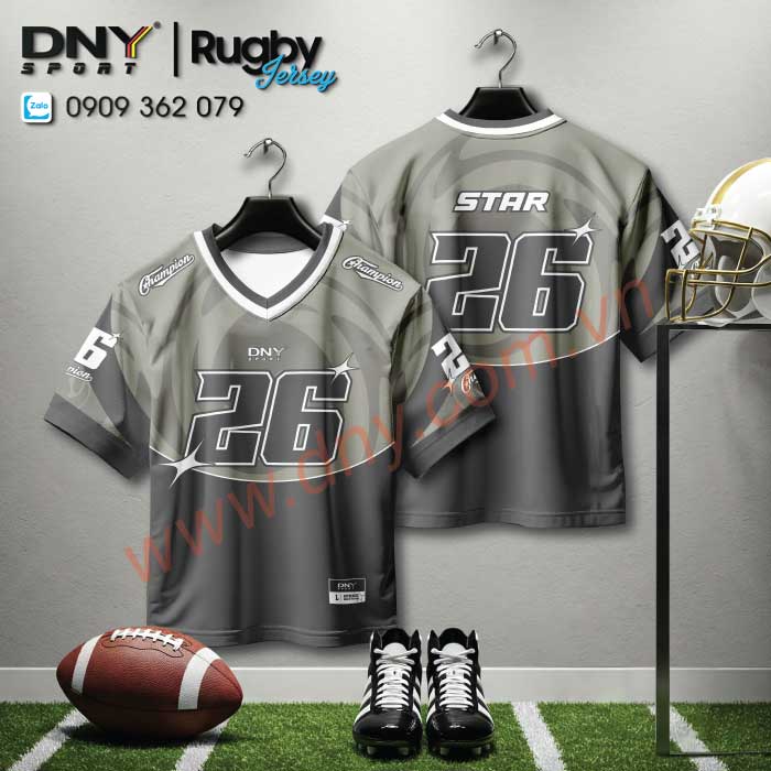 Bạn muốn trở thành tâm điểm của mọi trận đấu? Mẫu áo đồng phục lớp style bóng bầu dục “Star 26” gây ấn tượng mạnh với phối màu xám khói hiện đại, mang dáng vẻ của một chiến binh thép. Đường bo trắng cùng họa tiết ánh bạc hình quỹ đạo ngôi sao làm nổi bật tinh thần dẫn đầu và quyết đoán. Con số 26 được in lớn giữa ngực và sau lưng – như dấu ấn của một người chơi không ngại thử thách. Đặt may ngay hoặc xem thêm top 10 mẫu áo bóng bầu dục đẹp nhất tại đây.