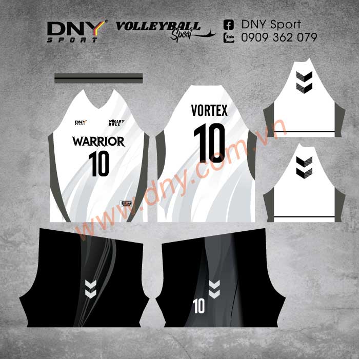 MẪU QUẦN ÁO BÓNG CHUYỀN ĐEN – TRẮNG - XÁM “VORTEX” – TINH TẾ TRONG PHONG CÁCH, MẠNH MẼ TRONG THI ĐẤU