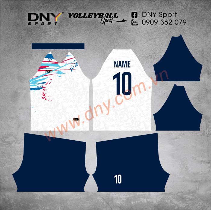 MẪU QUẦN ÁO BÓNG CHUYỀN TRẮNG – NAVY “ENERGY SPLASH” – SẮC MÀU TRẺ TRUNG, NĂNG LƯỢNG BÙNG NỔ