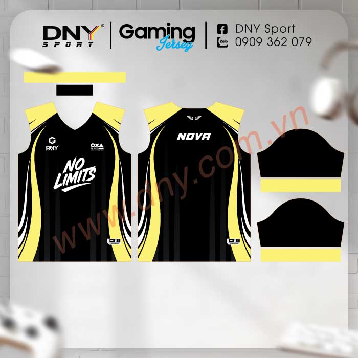 MẪU ÁO GAME ESPORT ĐEN – VÀNG “NOVA”