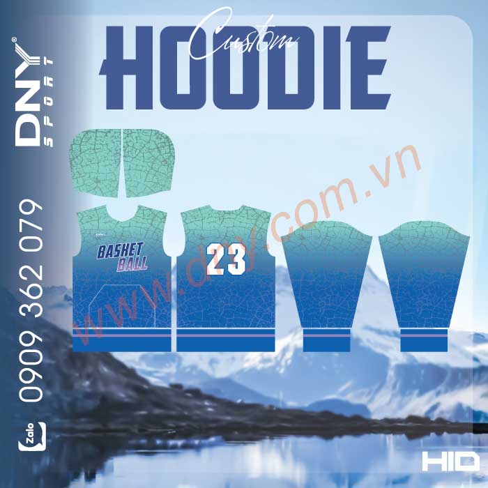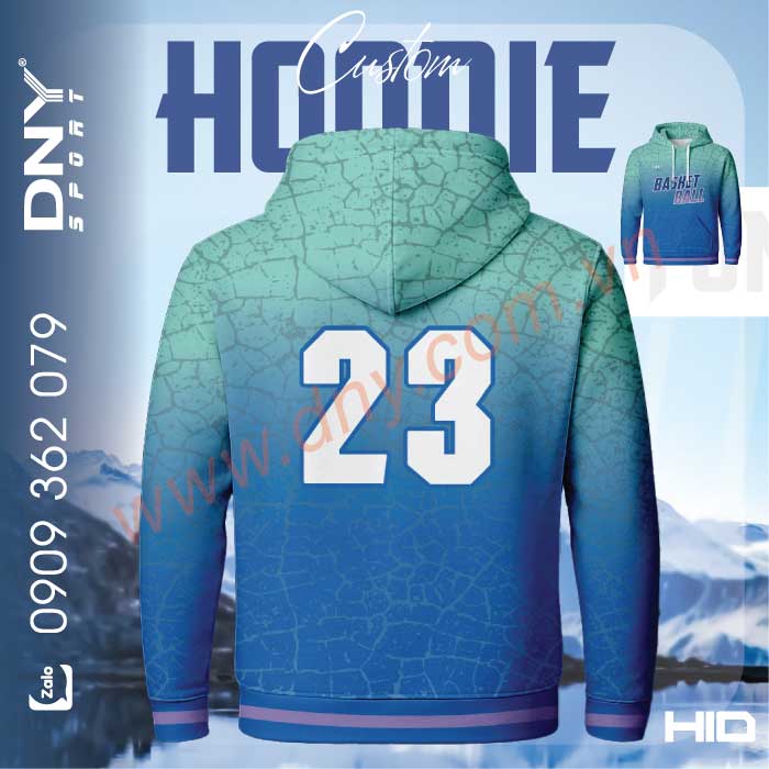 Áo hoodie bóng rổ màu xanh chuyển sắc với số 23