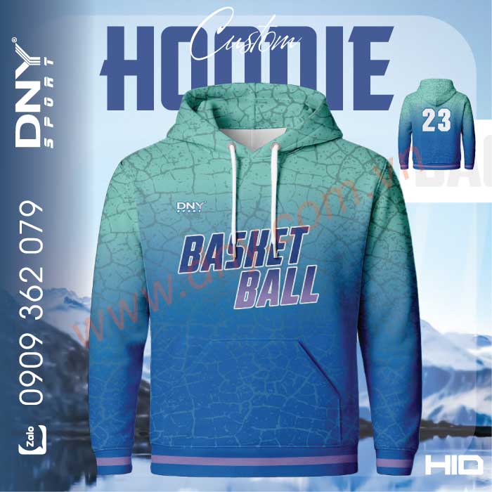 Hoodie bóng rổ xanh chuyển màu thời trang, trẻ trung năng động