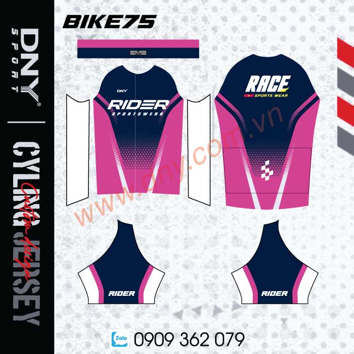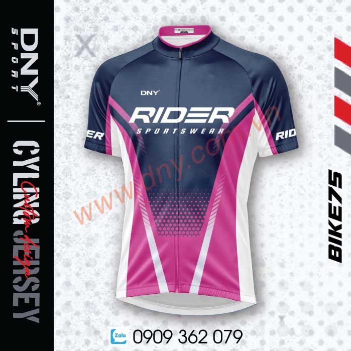 Có những gam màu sinh ra để nổi bật giữa đoàn đua: bộ quần áo CLB xe đạp RIDER RACE xanh đậm phối hồng tạo nên diện mạo hiện đại, cá tính và rất “đường phố”. Thiết kế mảng màu sắc nét giúp tổng thể trông gọn gàng nhưng vẫn thu hút ánh nhìn khi di chuyển tốc độ cao. Đặt may ngay hoặc xem thêm top 10 mẫu đồng phục quần áo xe đạp mới nhất tại đây.